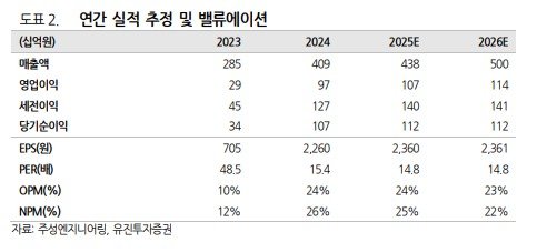 임 연구원은 "유리 기판과 신규 메모리 고객사향 퀄 테스트도 순항 중에 있다"며 "12개월 선행 실적 기준으로 주가순이익비율(PER) 20배를 적용해 주성엔지니어링의 목표주가를 4만7000원으로 상향한다”고 말했다.