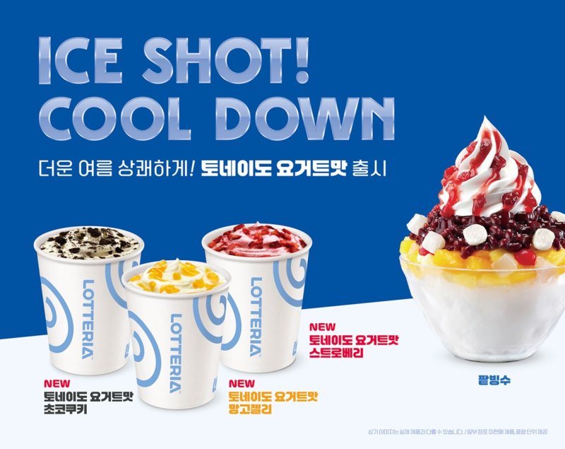 (서울=뉴스1) 배지윤 기자 = 롯데GRS는 버거 프랜차이즈 브랜드 롯데리아가 다가오는 여름을 맞이해 신메뉴 '토네이도 요거트맛 3종'과 '팥빙수'를 출시한다고 29일 밝혔다.