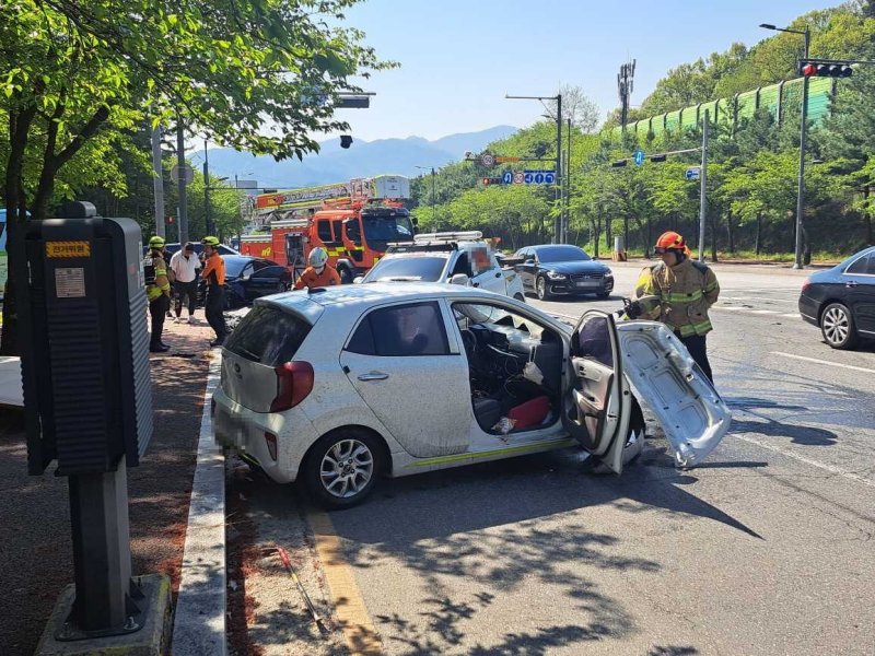 (원주=연합뉴스) 류호준 기자 = 29일 오전 9시 29분께 강원 원주시 무실동의 한 도로에서 30대 A씨가 몰던 모닝 차량과 제네시스 차량이 충돌했다.