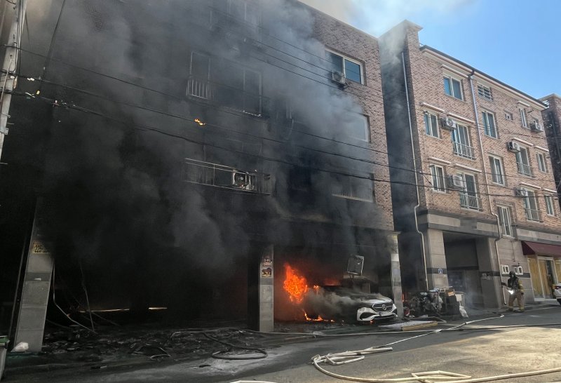 1층 주차장서 발화 시작해 건물 전체로 번져