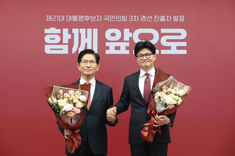 [서울=뉴시스] 이재우 하지현 한재혁 우지은 기자 = 국민의힘 김문수 대선 경선 후보와 한동훈 후보가 30일 국민의힘 제21대 대통령 선거 후보가 되기 위한 마지막 토론에 나선다.