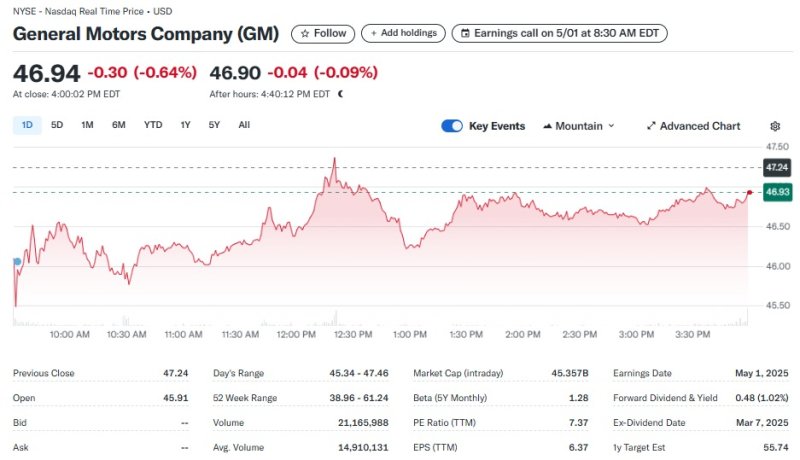 이에 비해 GM은 0.64% 하락했다. 이는 이날 실적을 발표한 GM이 자동차 관련 관세 인하 조치 이후 콘퍼런스콜을 다시 개최할 계획이라며 콘퍼런스콜을 전격 연기했기 때문이다.