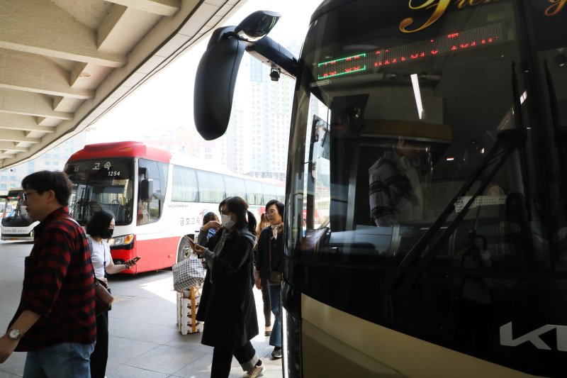 (광주=뉴스1) 이수민 기자 = 하루 연차휴가를 사용하면 최대 6일을 쉴 수 있는 황금연휴를 이틀 앞둔 29일 낮 12시. 광주 서구 유·스퀘어 고속버스 터미널에는 벌써부터 이른 휴가를 시작한 시민들의 발걸음으로 북적였다.