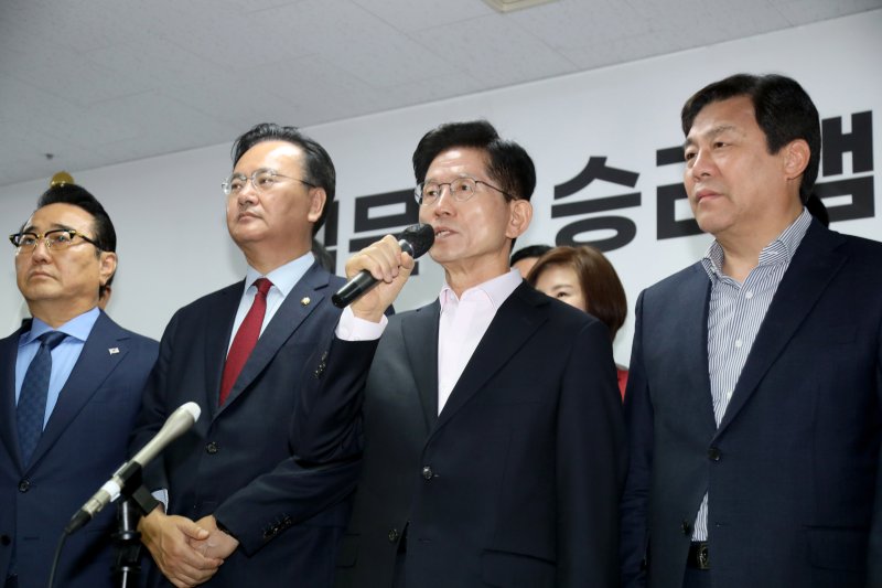 홍 후보 캠프에 몸을 담았던 유상범·김대식·백종헌·김위상 의원이 김 후보 지지선언을 했다. 원외에서는 이영수 새로운미래준비위원회 회장, 김선동 전 의원과 조광한 전 남양주시장 등 당협위원장 53명도 동참했다.