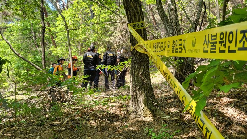 합동 감식을 마친 산림 당국은 브리핑을 통해 "전날 진행한 1차 감식에서 발화 추정 지점을 굿당, 제사를 지내는 제단 등 3곳으로 특정했었다"며 "오늘 다시 조사한 결과 굿당과 제단은 아니고 등산로에서 300m 정도 떨어진 외진 곳으로 보인다"고 밝혔다.