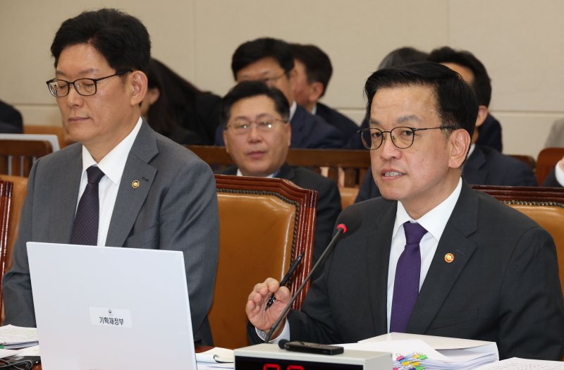 최 부총리는 권한대행 인수인계가 필요한 것 아니냐는 질의에는 "만약 그런 결정(사퇴)을 하시게 되면 인수인계하지 않을까 생각한다"고 답했다. 잦은 권한대행 교체가 국가 신인도 저하로 이어질 수 있다는 지적에는 "제가 말씀드리기에 적절치 않은 것 같다"며 답변을 피했다.