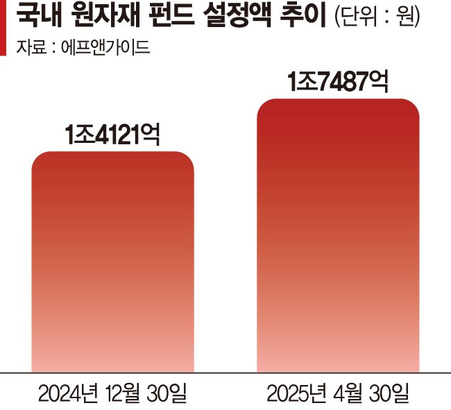 1일 금융정보업체 에프앤가이드에 따르면 '원자재 펀드' 테마로 분류된 펀드 41종의 설정액은 1조7487억원으로 지난해 말(1조4121억원) 대비 3366억원 증가했다. 지난해 한 해동안 원자재 펀드 총설정액이 205억원 증가에 그친 점을 감안하면 가파른 증가세인 셈이다.
