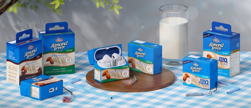 아몬드브리즈 케이스는 실제 아몬드브리즈 음료의 사각 패키지 특징을 그대로 재현했다. 소비자들에게 높은 인기를 얻고 있는 오리지널, 언스위트 제로슈거, 초콜릿 3종으로 출시하며, 제품별 특색을 반영한 전용 키링도 함께 제공된다.
