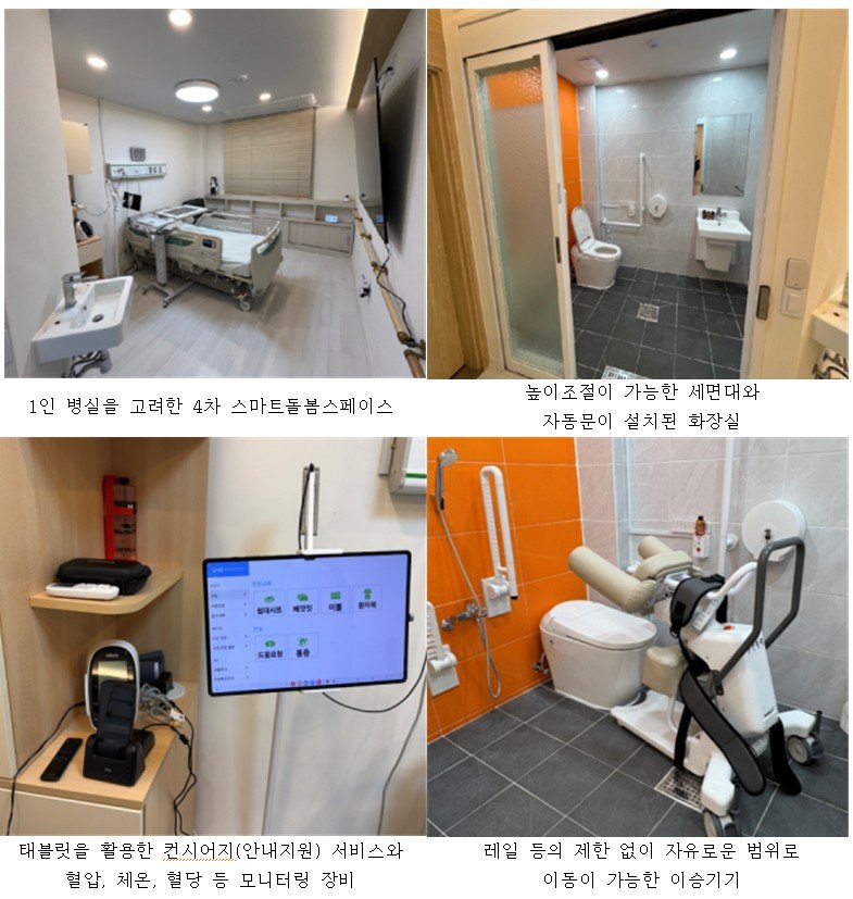이번에 개소된 4차 스마트돌봄스페이스는 돌봄 로봇과 스마트 모니터링 시스템을 활용할 수 있도록 병실 환경을 고려해 구축됐다.