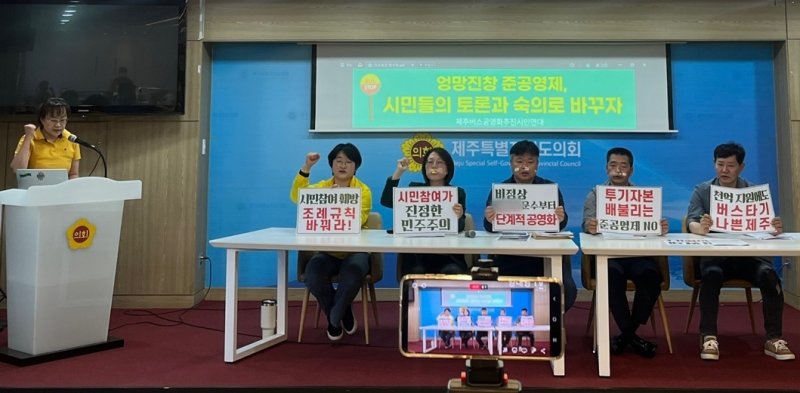제주의 유일한 대중교통인 버스에 2017년 준공영제가 도입되면서 매해 1000억원에 달하는 예산이 지원되고 있지만 투입되는 예산만큼의 효과를 보지 못하며 오히려 버스 회사들의 도덕적 해이만 불러오고 있다는 게 이들의 주장이다.