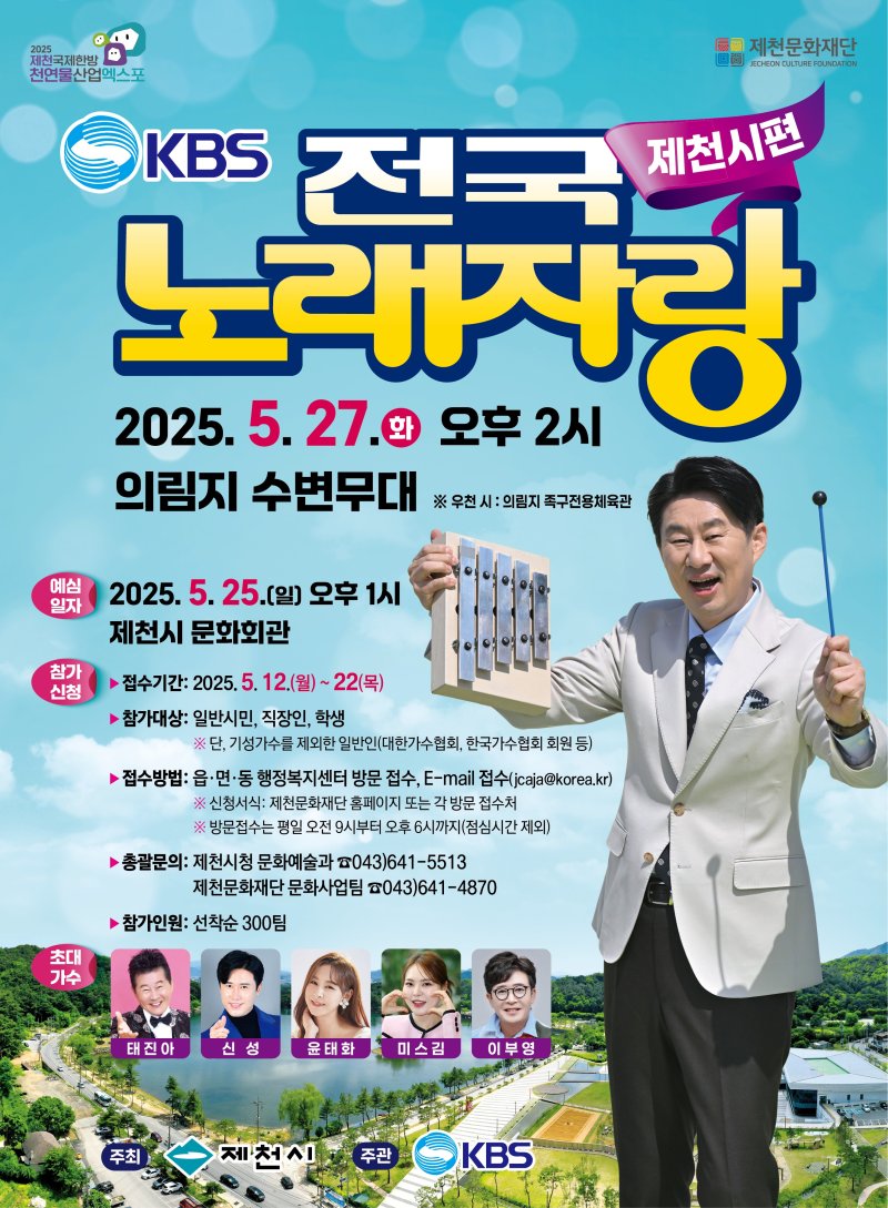 (제천=뉴스1) 손도언 기자 = KBS 전국노래자랑이 오는 27일 오후 2시 충북 의림지 수변 무대에서 제천 시민들을 만난다.