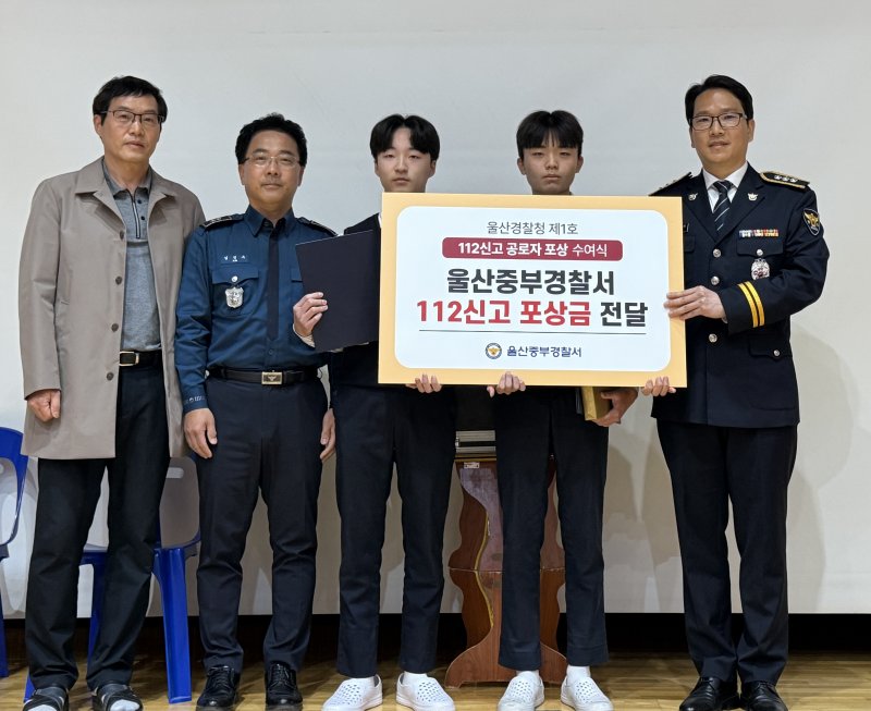 7일 울산중부경찰서는 지난 2일 중구 성안중학교 3학년 학생 2명에게 감사장과 포상금을 전달했다.