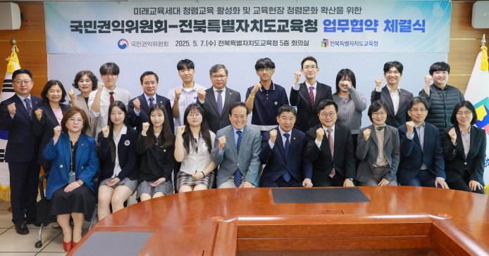 이날 협약을 계기로 양 기관은 미래세대의 청렴의식을 높이고, 교육현장 전반에 청렴문화를 확산하기 위해 적극 노력하기로 했다.