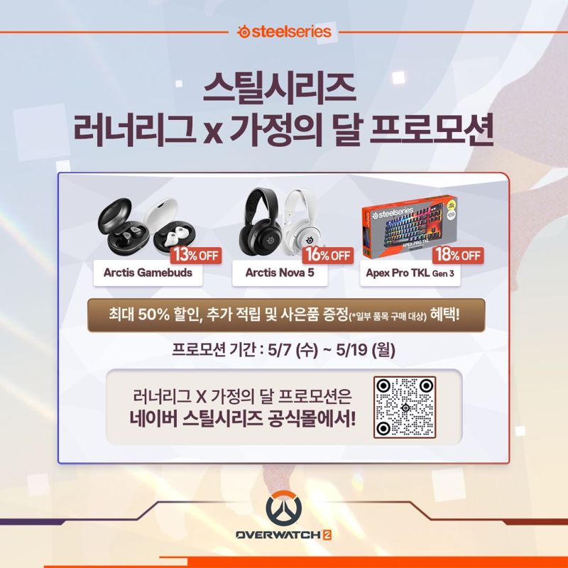 스틸시리즈가 ‘오버워치2 러너리그X가정의 달 프로모션’을 진행한다고 7일 밝혔다.