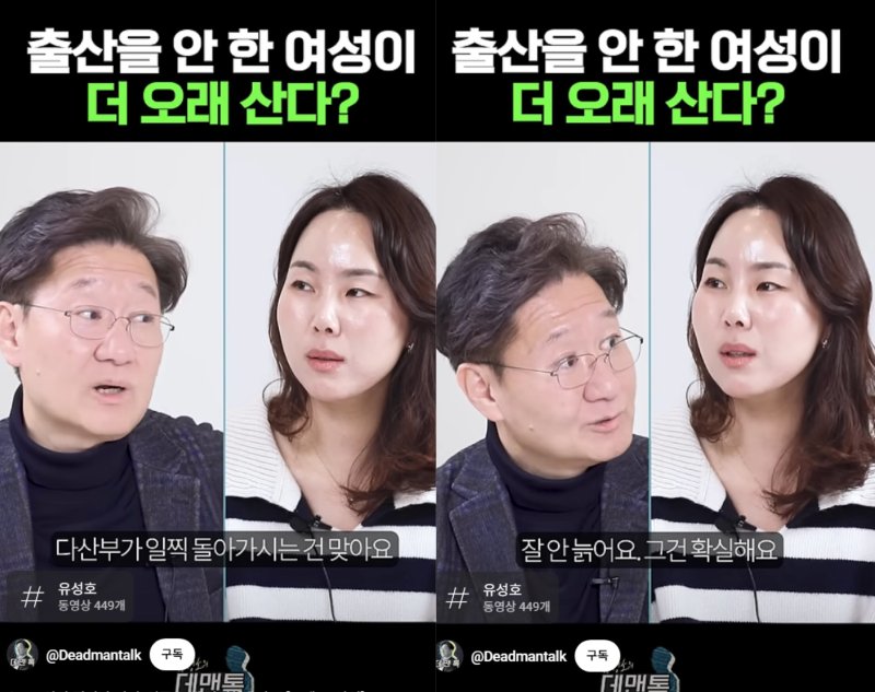 지난 3일 유성호 서울대 법의학교실 교수 유튜브 채널 '유성호의 데맨톡'에는 '다산부가 일찍 돌아가시는 건 맞아요'라는 제목의 쇼츠 영상이 올라왔다.