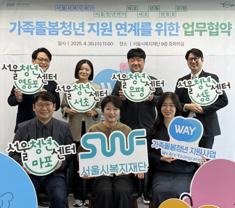 (서울=뉴스1) 권혜정 기자 = 서울시복지재단은 지난달 30일 서울청년센터 마포·서초·성동·영등포·은평센터와 가족돌봄청년 지원을 위한 업무협약을 체결했다고 8일 밝혔다.