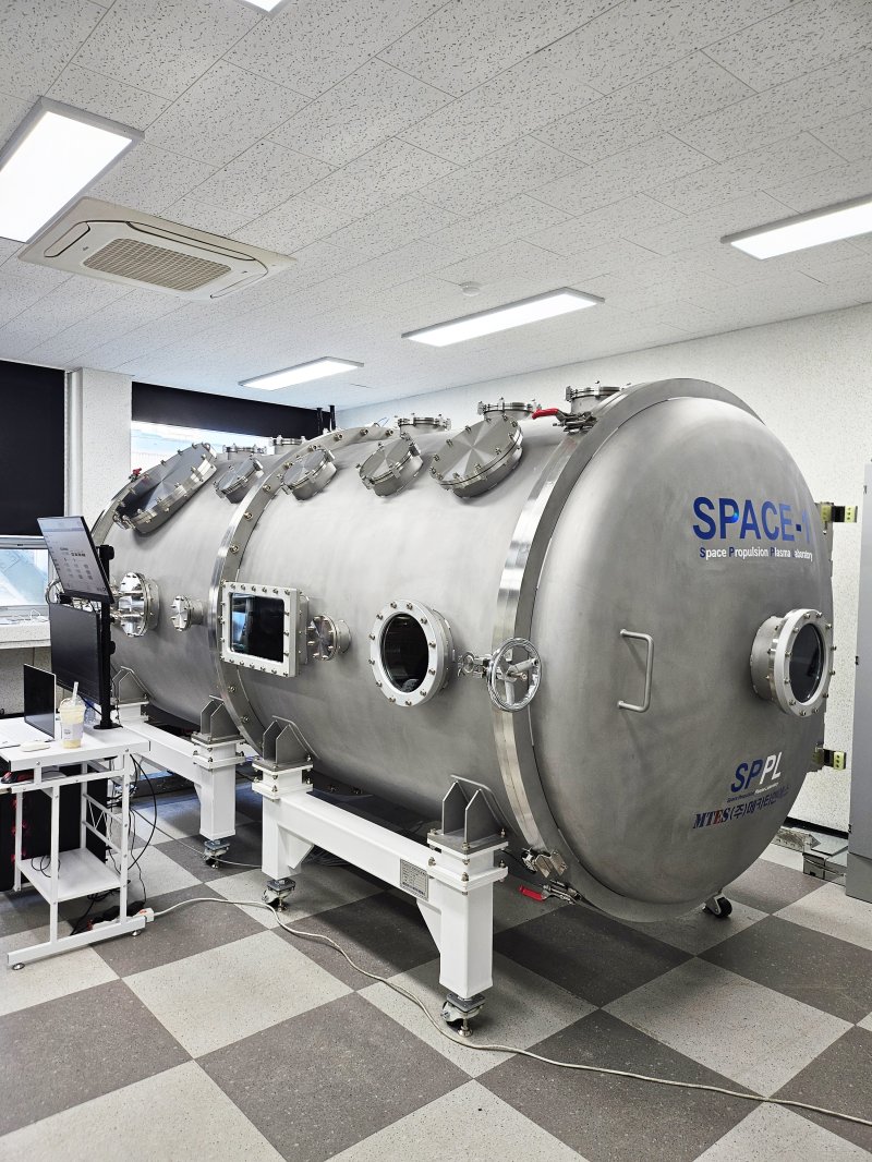 이번에 설치된 대형 진공시험시설인 'SPACE-1'은 국내 최대 규모인 직경 약 1.7m, 길이 약 3.5m로, 약 5 kW급 이상의 전기추력기 성능 및 수명 시험평가와 위성, 우주반도체, 우주소재 등 우주용 부품의 진공시험이 가능하도록 설계됐다.