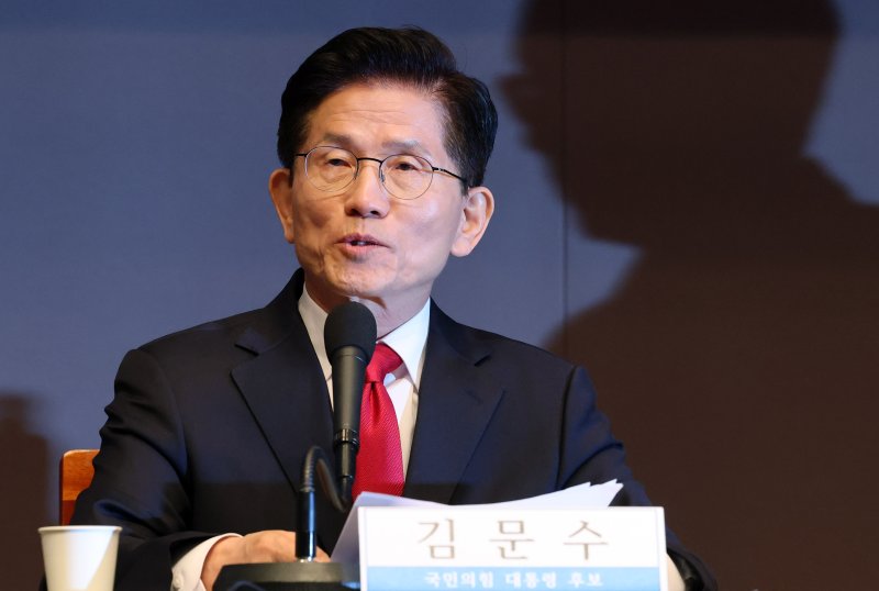 (서울=뉴스1) 박기범 손승환 기자 = 김문수 국민의힘 대선후보는 8일 윤석열 전 대통령 출당 문제에 대해 "대통령 임기 말에 지지율이 떨어지면 출당하는데, 아주 무책임한 일"이라고 밝혔다. 김 후보는 이날 오전 서울 중구 프레스센터에서 열린 관훈토론회에서 "(대통령을)내쫓는다고 해결되지도, 면책되지도 않는다"며 이같이 말했다.