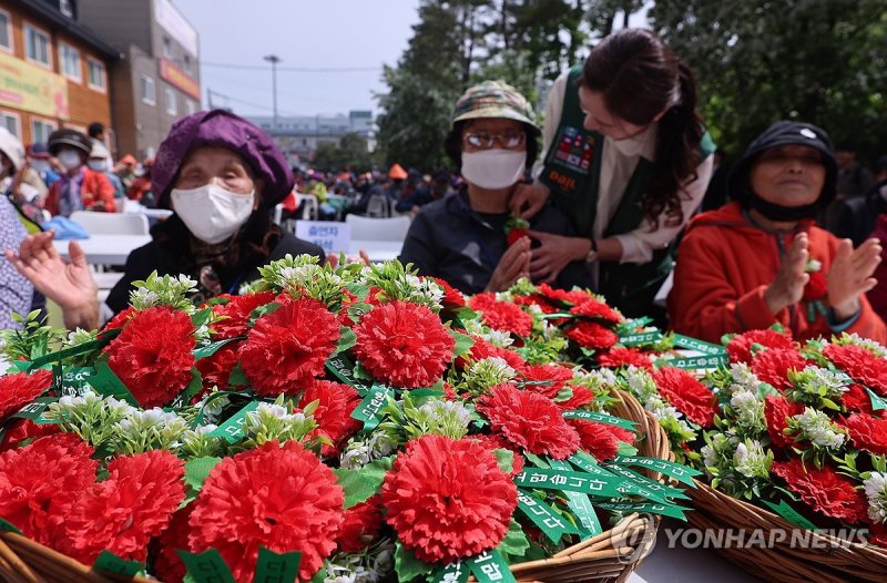 카네이션 달고 노래자랑…"아들딸 없는데 챙겨주니 눈물나네"(종합)'밥퍼' 다일공동체 어버이날 행사…최일도 목사 "피 안 섞여도 자식처럼"