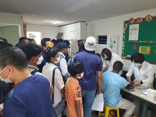 건강검진 대상은 경산에 거주하는 외국인 근로자이다.