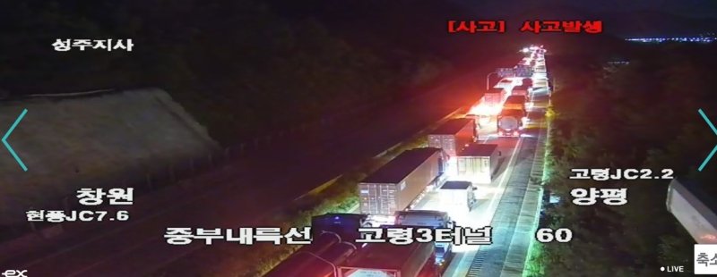 한국도로공사는 재난 문자를 통해 "교통사고로 전면 차단돼 인근 IC에서 국도 우회하기를 바란다"고 안내했다.