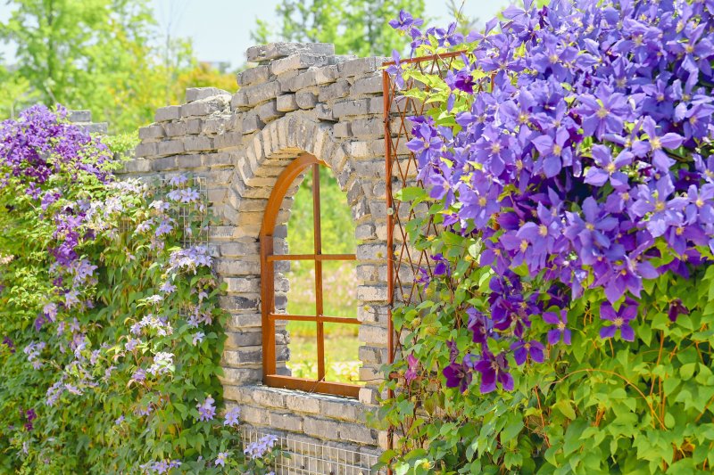 국립세종수목원에는 국내 유일, 최대 규모(4500㎡)의 으아리속 현지외 보전원인 담장정원이 조성되어 있다.