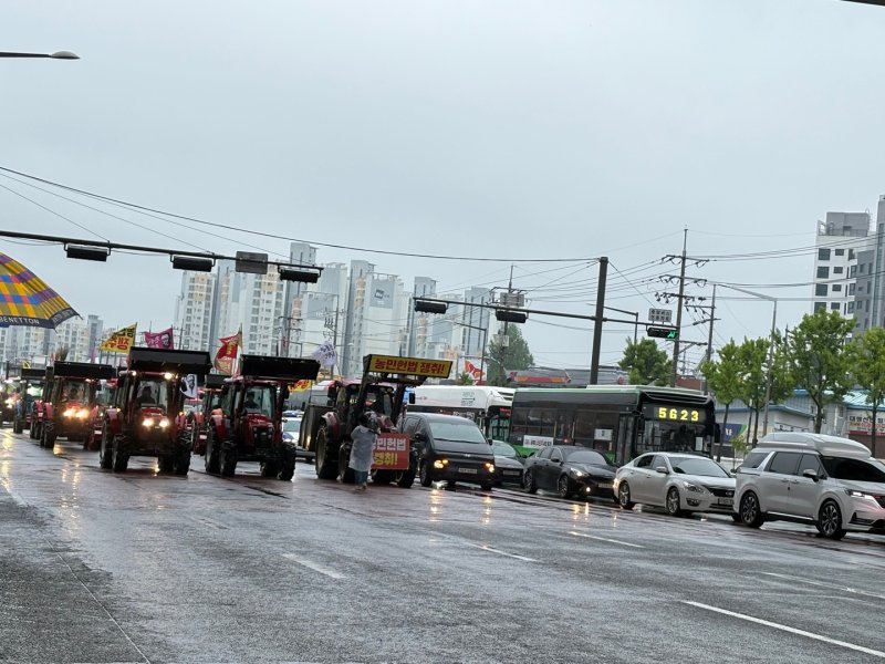 앞서 서울경찰청은 트랙터의 도심 진입에 따른 안전 우려 등을 이유로 지난 8일 전농 측에 트랙터 운행을 제한하는 집회 제한 통고를 내린 상태다. 경찰은 기아대교·박미 교차로 등에 교통경찰 74명가량을 배치해 동·서 차량 우회를 유도하고 있다.