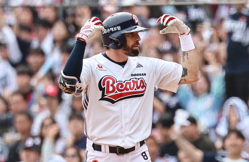 두산은 4회말 추가점을 냈다. 1사 1루에서 타석에 선 강승호가 신민혁에게 좌월 2점 홈런을 때려내면서 3-0으로 달아났다.