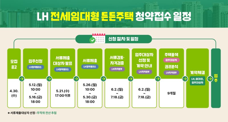 공고일인 4월30일 기준 무주택 신생아·다자녀 가구라면 소득·자산에 관계없이 최대 8년간 거주할 수 있으며, 전세보증금은 수도권 2억원, 광역시 1억2000만원, 기타 지역 9000만원까지 지원받을 수 있다. 입주자는 지원한도액 범위 내 전세보증금의 20%와 지원 금액에 대한 월 임대료를 부담하게 된다.