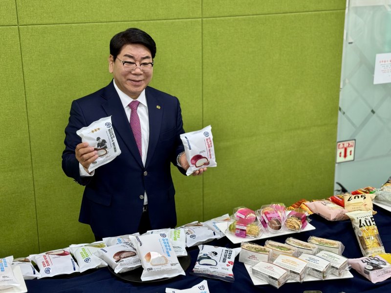 (안성=뉴스1) 이민주 기자 = 김영식 푸드코아 대표는 지난 8일 경기도 안성에 위치한 본사에서 진행한 '메인비즈협회 우수기업 현장투어'에서 연세우유 생크림빵을 들어 보이며 이같이 말했다.
