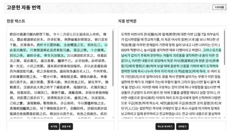 이번 프로그램은 최신 트랜스포머(Transformer) 계열 AI 모델을 기반으로 조선 시대 자료에서 구축된 다량의 학습 데이터로 훈련됐다. 전통 고문헌의 한문을 텍스트로 입력하면 한 번에 1000자까지 번역할 수 있다.