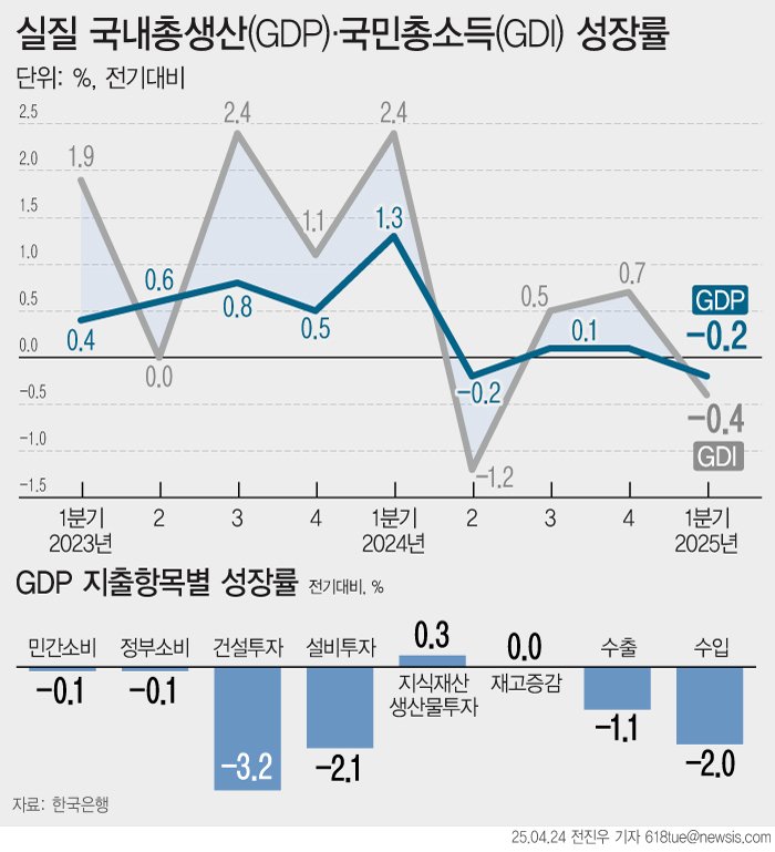 [서울=뉴시스]남주현 기자 = 국내 외 기관들이 우리나라의 올해 경제성장률 전망치를 속속 낮추고 있다. 올해 1분기 -0.2%로 깜짝 역성장 거둔데 다 트럼프 관세 정책에 따른 수출 타격이 우려되면서다.