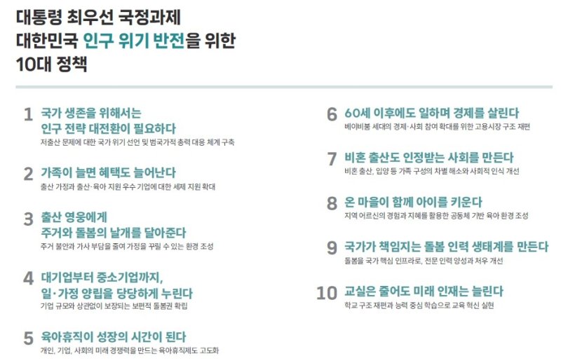 연구원은 현재 대선 후보들의 인구 관련 공약에 구체성, 실효성이 부족하다고 보고, 경제·교육·노동·젠더(성) 등 여러 분야의 전문가들과 함께 제안을 마련했다.