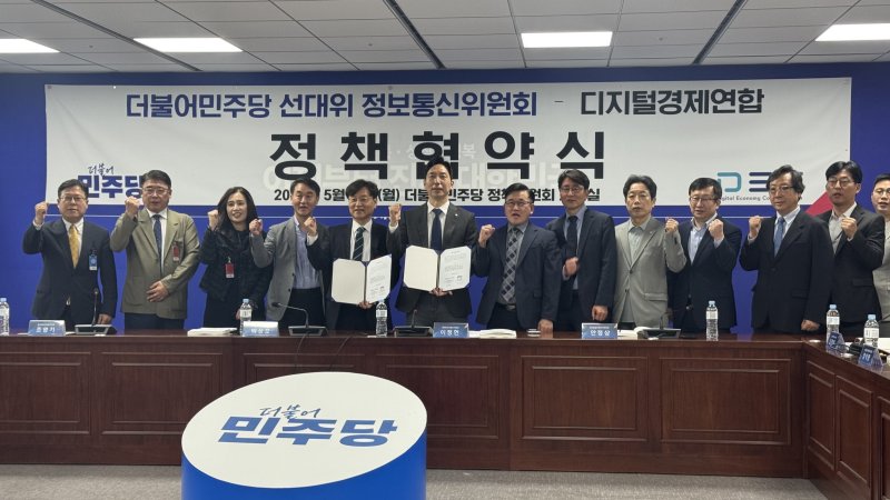 디지털경제연합(디경연)은 12일 오전 국회에서 민주당 선대위 정보통신위원회와 디지털경제 정책협약식을 갖고 디지털 신산업 분야 12개 핵심과제를 전달했다고 밝혔다.