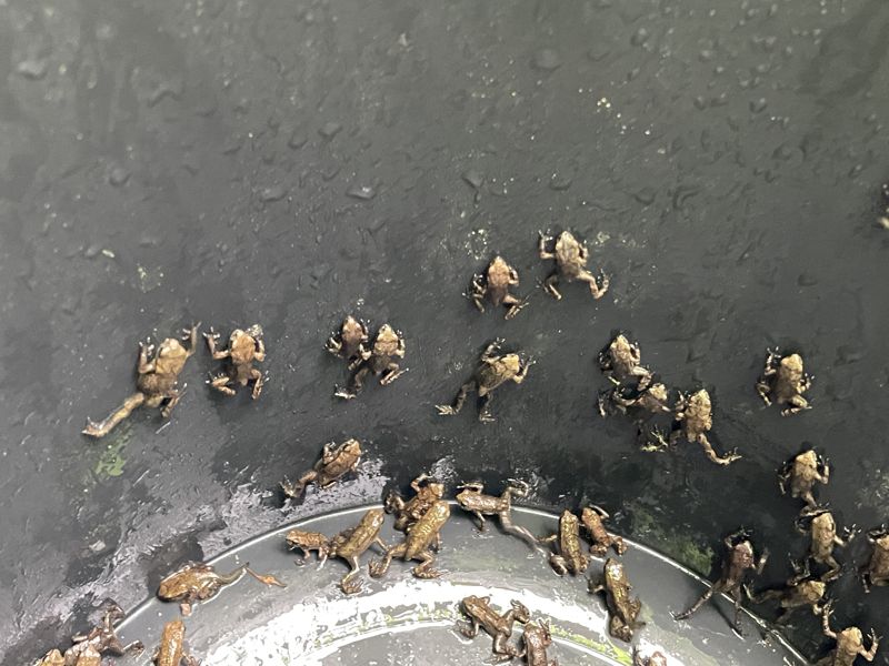 【파이낸셜뉴스 울산=최수상 기자】 올해도 울산 중구 장현저류지에서 태어난 새끼 두꺼비들이 새로운 보금자리를 찾아 대이동을 시작했다. 시민들은 매년 벌어지는 광경이지만 끈질긴 생명력에 대한 경외심을 갖게 한다며 두꺼비들을 응원했다.