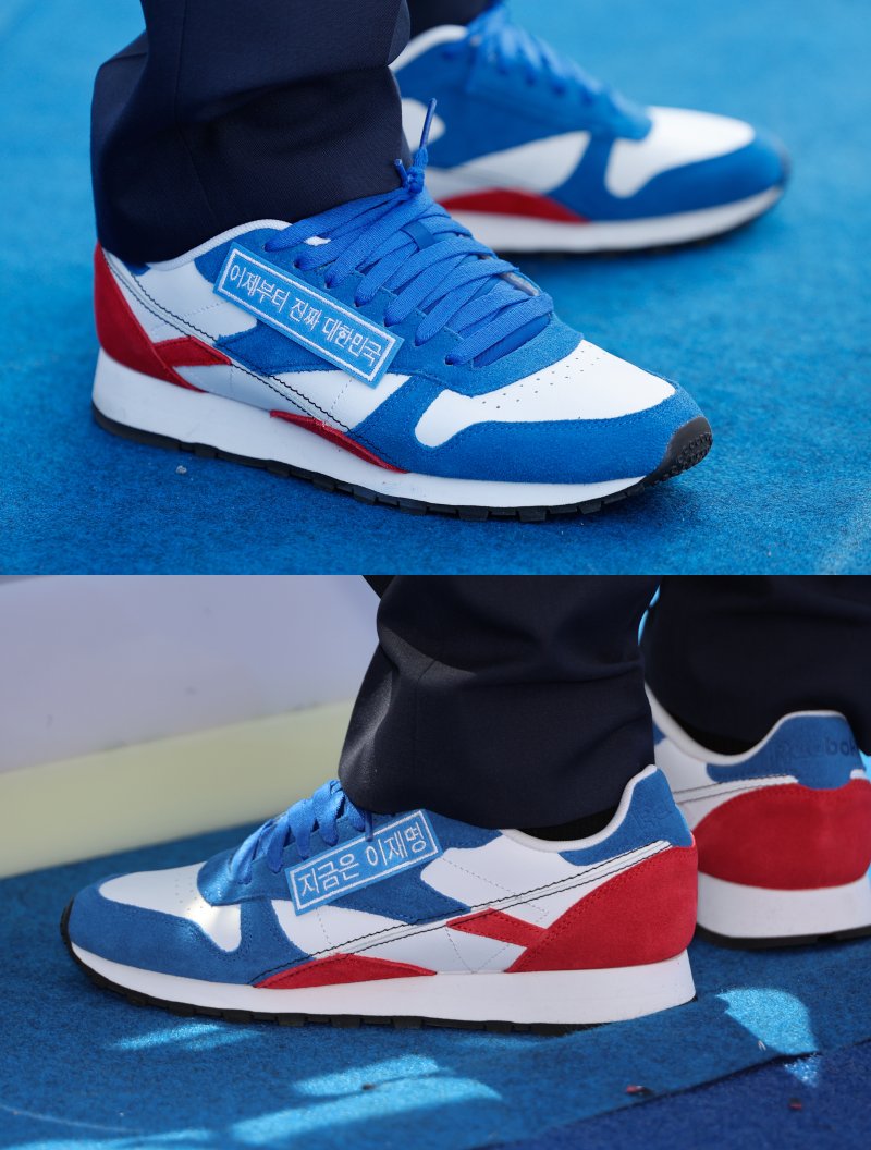 이 후보는 전날 서울 광화문 청계광장에서 첫 유세에 나서면서 착용하고 있던 양복 재킷과 구두를 벗고, 민주당의 전통색인 파란색과 보수를 상징하는 빨간색이 섞인 운동화와 민주당 점퍼로 갈아입었다.