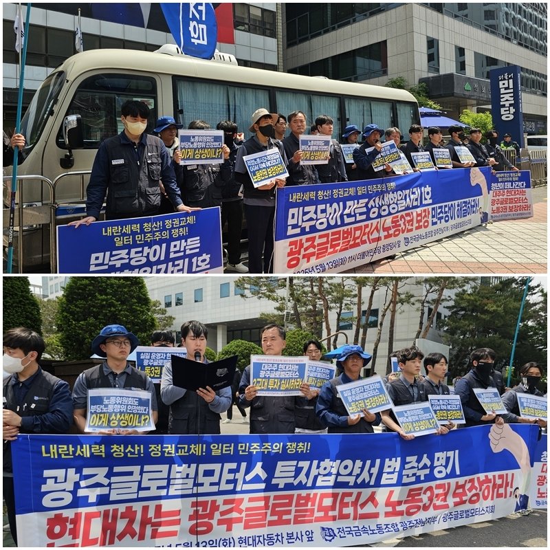 또 "GGM이 단체교섭 대신 '상생협의회'에서 임금과 노동조건을 정하고 있다. 이는 헌법과 노동법이 보장한 노동3권을 무력화하는 것이다"며 "현대차는 2교대제 시행을 위한 투자에도 적극 나서야 한다"고 촉구했다.