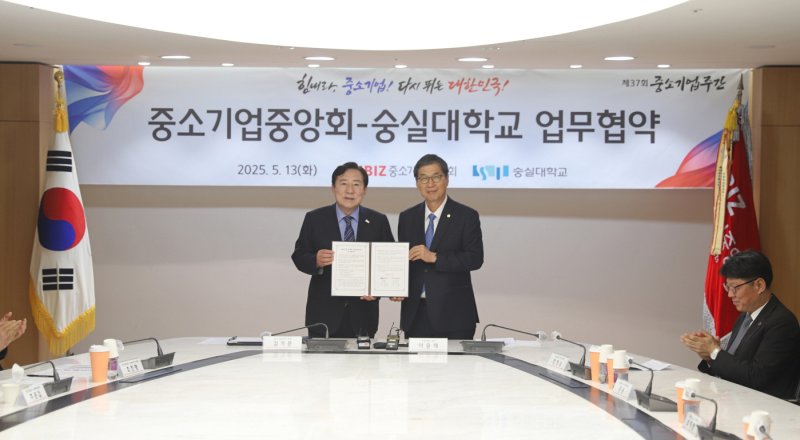 이날 협약식에는 숭실대 이윤재 총장과 김기문 중소기업중앙회장을 비롯해 양 기관 관계자들이 참석했다.