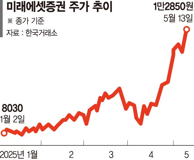 한국투자증권 백두산 연구원은 "최근 증권주의 동반 상승세는 앞서 발표된 1·4분기 호실적과 2025년 연간 실적에 대한 기대감, 정책 수혜 가능성 등이 두루 부각된 결과"라며 "양호한 채권운용 실적과 국내 주식시장에서의 브로커리지 실적 개선, 신사업을 통한 기업금융 외형 확대가 기대된다"고 판단했다.