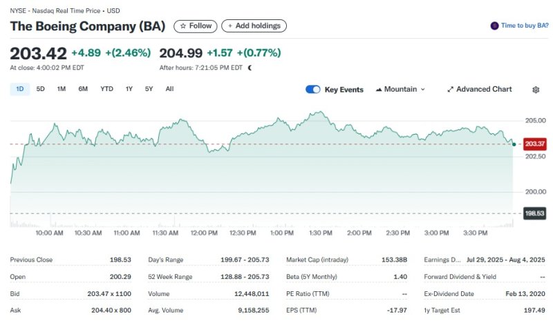 이같은 소식이 전해지자 13일(현지시간) 뉴욕증시에서 보잉의 주가는 2% 이상 급등했다. 이날 보잉은 2.46% 급등한 203.42달러로 장을 마감했다. 이는 52주 신고가다.