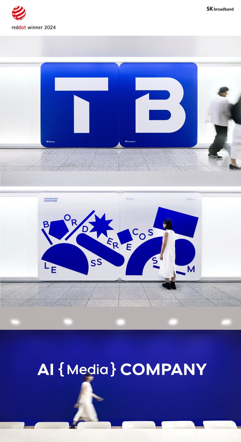 SK브로드밴드는 세계 3대 디자인 어워드 ‘레드닷 디자인 어워드 2024’에서 ‘T-B 브랜드 아트월’로 브랜드 & 커뮤니케이션 부문에서 본상 수상의 영예를 안았다고 16일 밝혔다.(사진=SKB) *재판매 및 DB 금지 [서울=뉴시스] 심지혜 기자 = SK브로드밴드는 '최대주주 등의 주식보유 변동' 공시를 통해 SK텔레콤의 지분율이 74.38%에서 99.14%로 늘어났다고 14일 밝혔다.