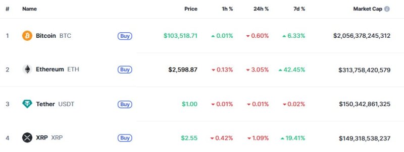 15일 오전 8시 20분 현재 글로벌 코인 시황 중계사이트인 코인마켓캡에서 비트코인은 24시간 전보다 0.60% 하락한 10만3518달러를 기록하고 있다.