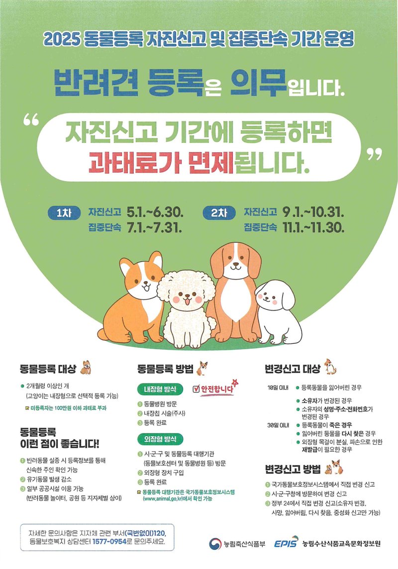 구 관계자는 "유기·유실 동물을 줄이기 위해 동물 등록 자진신고 기간을 운영하니 기간 내 적극적인 참여를 부탁드린다"고 말했다.
