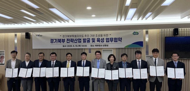 [의정부=뉴시스] 배성윤 기자 = 경기도는 15일 경기도청 북부청사에서 '경기북부 전략산업 발굴 및 육성'을 위한 업무협약(MOU)을 체결했다.