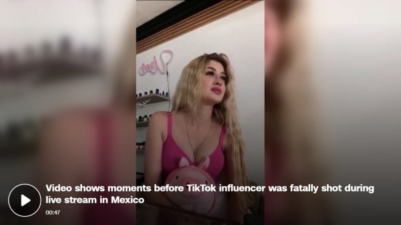 23살의 발레리아 마르케스는 13일 생방송 도중 배달원과 대화를 나누던 중 가슴과 머리에 한 발씩 총을 맞고 쓰러져 즉사했다. 모델 겸 뷰티 인플루언서인 그녀는 과달라하라 외곽 사포판의 한 미용실 안에서 생방송 중 사고를 당했다.