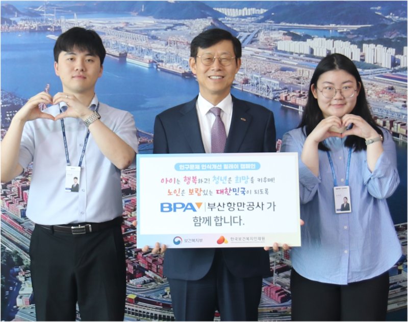 부산항만공사(BPA)는 보건복지부와 한국보건복지인재원이 공동 추진하는 '인구문제 인식개선 릴레이 캠페인'에 동참했다고 15일 밝혔다.