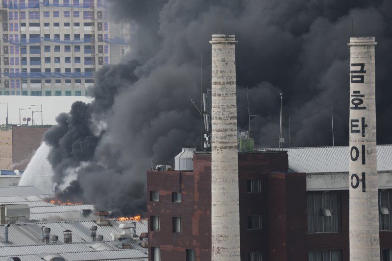 공장 내부의 타이어 자재 보관동은 반경 3㎞ 규모의 검은 연기를 하늘로 쉴 새 없이 토해냈다.