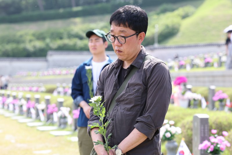 (광주=뉴스1) 박지현 기자 = 제45주년 5·18민주화운동기념식을 하루 앞둔 17일 방송인 김제동이 광주를 찾아 5월 영령에 참배했다.