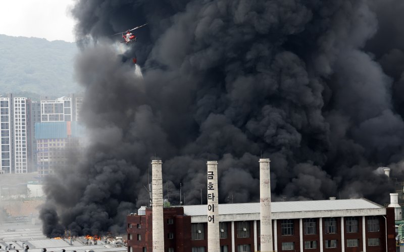 금호타이어 광주공장에선 이날 오전 7시 11분쯤 타이어 기본재료를 혼합하는 정련 공장 내 오븐 장치에서 스파크가 튀면서 불이 났다.