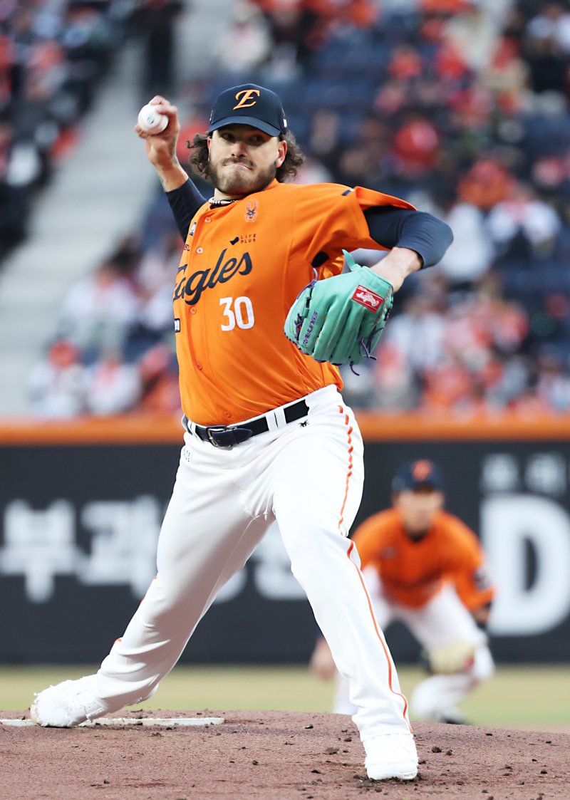 7회초까지 97구를 던져 탈삼진 16개를 기록한 폰세는 8회초에도 마운드를 지켰다.